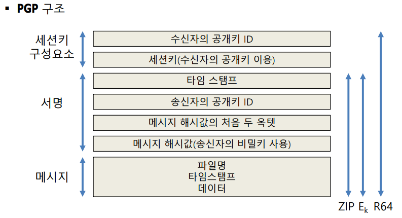 - 메시지 내용의 프라이버시를 보증하는 표준 보안 메일 프로토콜로 메일 전체를 암호화